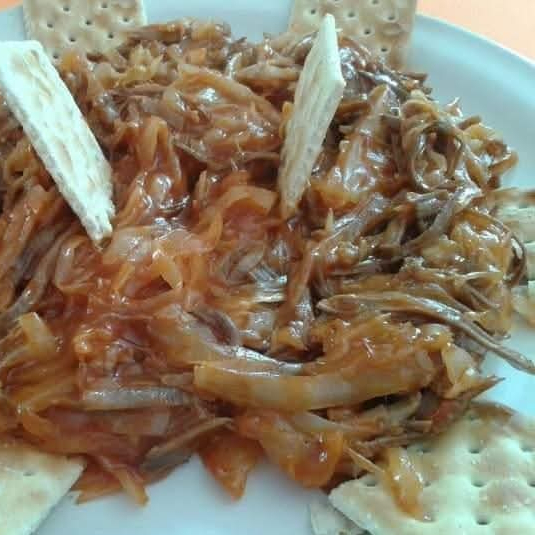 Carne sobaquera de Res con repollo y la preparación polaca estilo El Cejas. Incluye galletas saladas y totopos