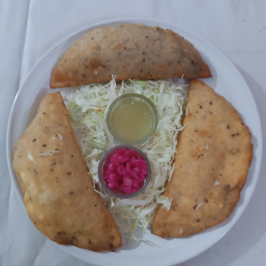 Pieza de Empanada de masa de maíz, Rellena de Frijol y Queso