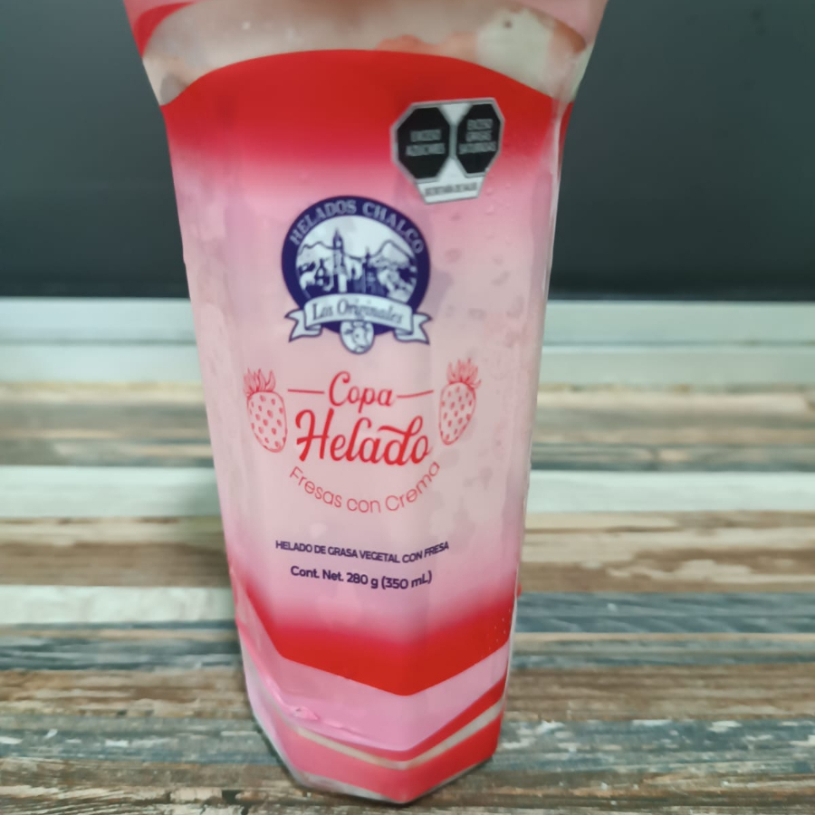 Helado Chalco de Fresas con Crema en vaso
