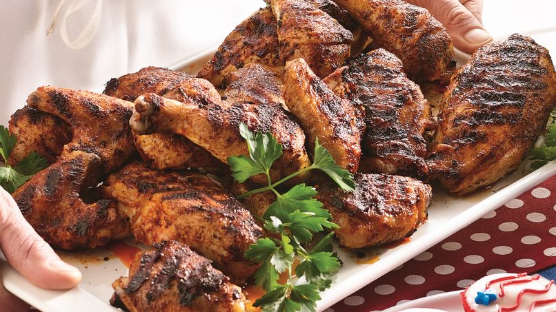 1 Pollo asado al carbón, Porcionado en 10 piezas , acompañado de salsa, cebolla curtida ensalada de repollo, arroz y tortilla. (250 gr- 300 gr )