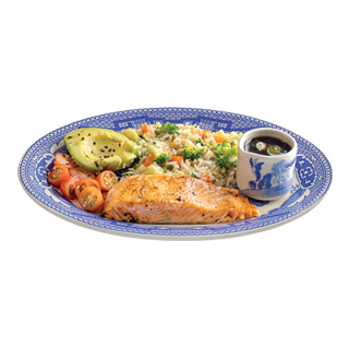 Salmón a la parrilla con arroz primavera