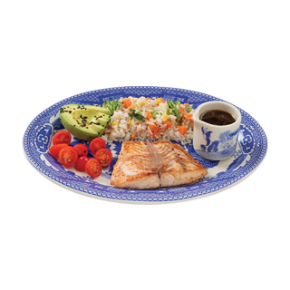 Salmón a la plancha o al Mojo de ajo o al ajillo (200 g). Con arroz blanco y ensalada de la casa.