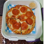 Pizza tamaño personal preparada con masa artesanal, salsa de tomate y queso mozzarella. Incluye rebanadas de pepperoni.