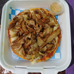 Pizza tamaño personal preparada con masa artesanal, salsa de tomate y queso mozzarella. Con carne al pastor