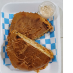 Torta de pierna guisada servida en pan suave y bien doradito. Lleva media crema, queso crema, mayonesa, frijol preparado y lechuga fresca.