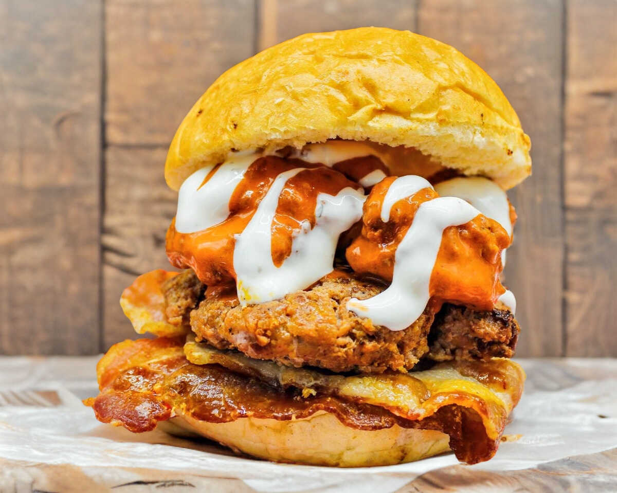 Carne, tocino, queso gouda y 100g de boneless bañados en tu salsa preferida y ranch.