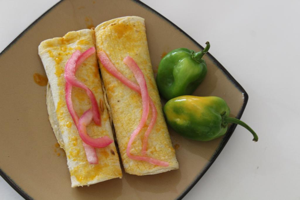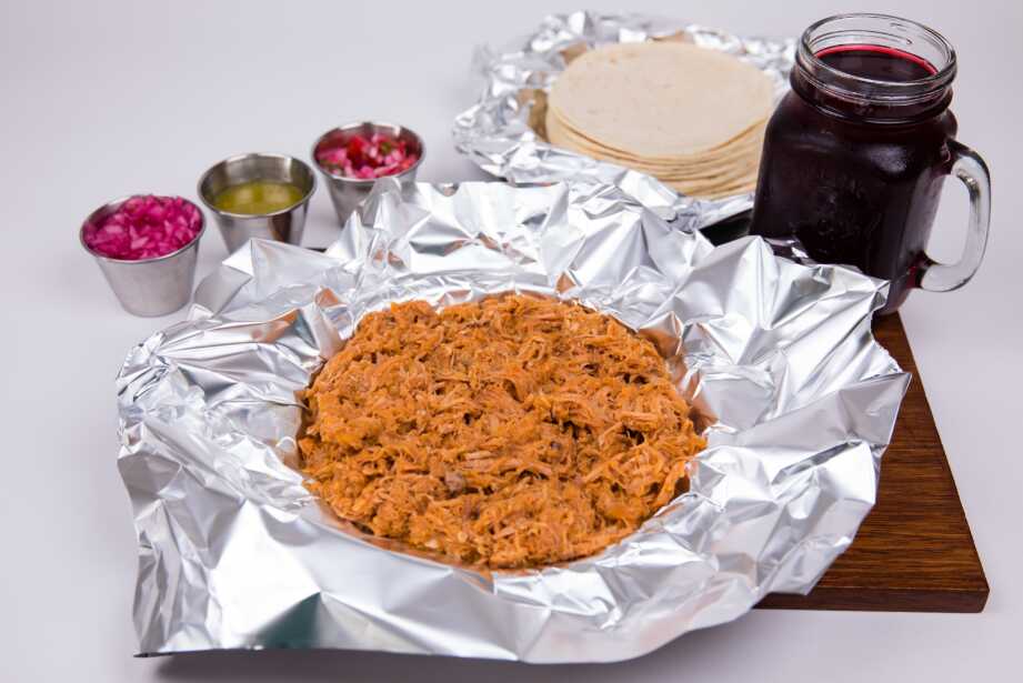Quesadilla de cochinita pibil con carne maciza (tortilla hecha a mano con 50 gramos de carne y 50 gramos de queso).
