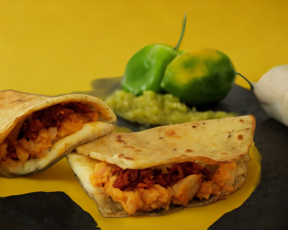 Quesadilla de papa con chorizo de pavo (tortilla hecha a mano con 50 gramos de carne y 50 gramos de queso).