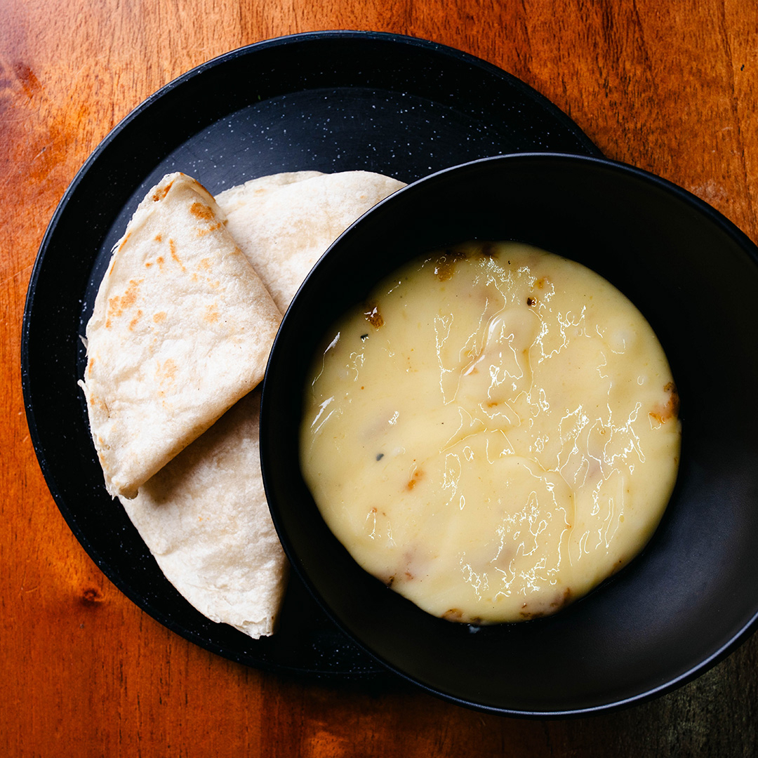 300gr de queso fundido acompañado de 3 tortillas de harina