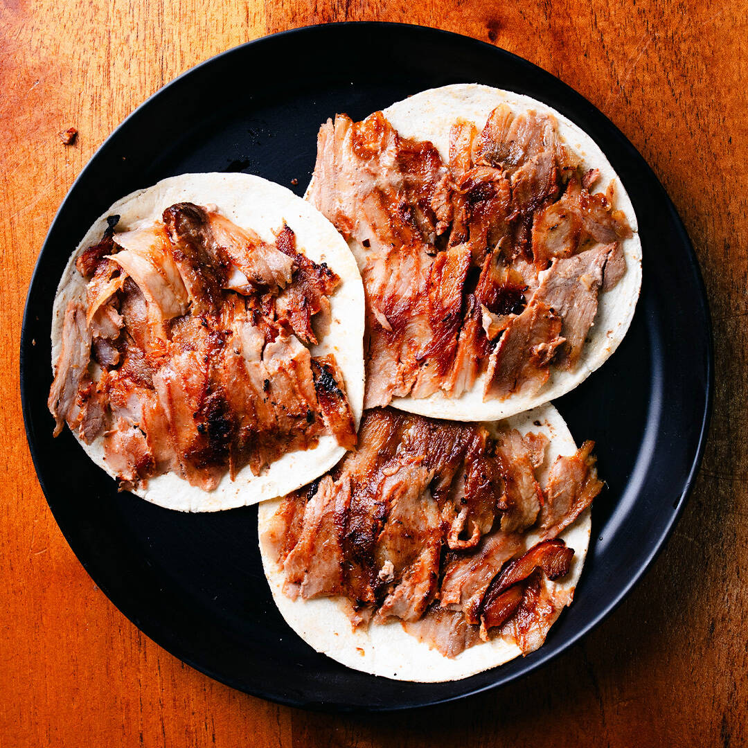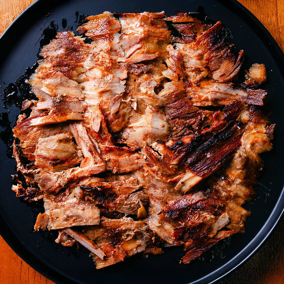Kilo completo directo de trompo de Pastor. Incluye 25pz tortillas y salsas.