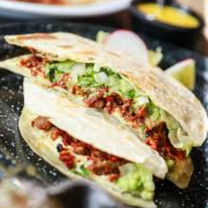 gringa de chorizo argentino, dandole un toque de asado al carbon, con sabor casero, acompañados de salsa de guacamole y salsa tatemada