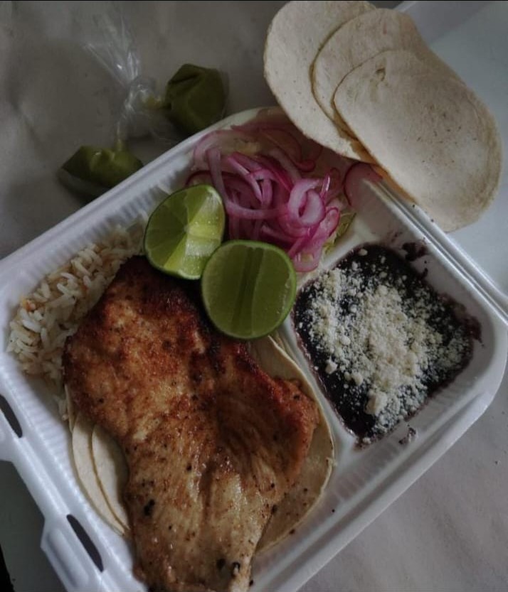Orden de milanesa de pollo con un delicioso empanizado crujiente,acompañado de frijol, lechuga, tomate, cebolla, tortillas y salsa.