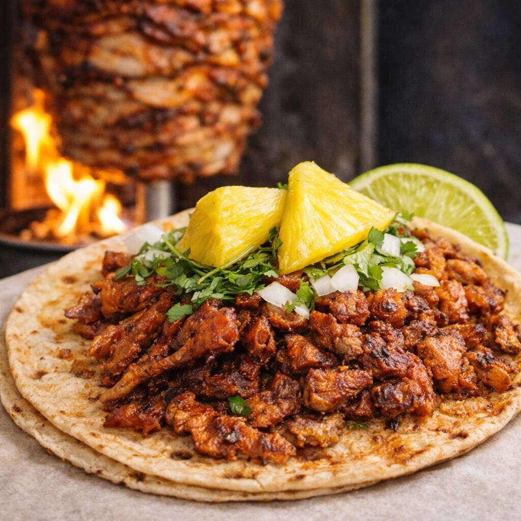 Taco de pastor lleno de sabor. El antojo perfecto… aunque difícil comer solo uno.