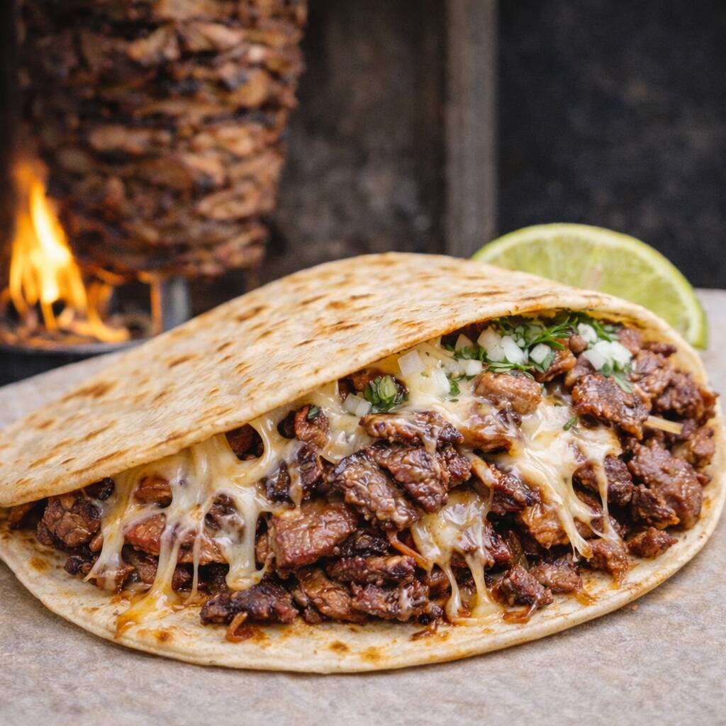Perfecta para no compartir. Tortilla de harina rellena de sirloin jugoso y queso derretido.