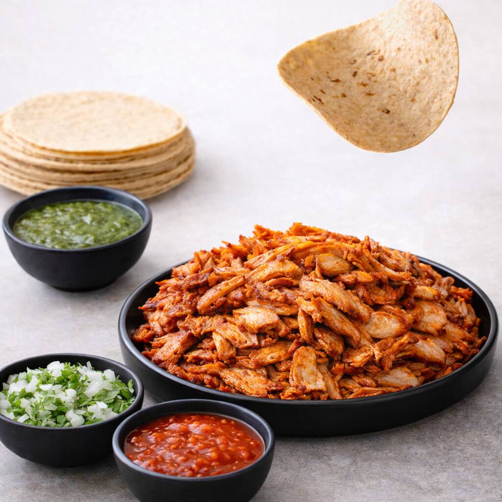 Ideal para compartir. Nuestro pastor tradicional acompañado de tortillas, limones y salsa roja y verde.