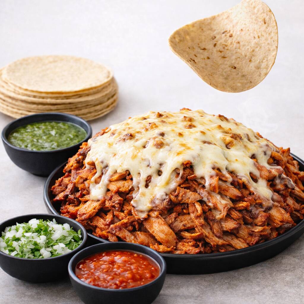 Nuestro clásico kilo de pastor con queso derretido. Incluye tortillas, limones y salsa roja y verde. *La carne se pesa precocida.