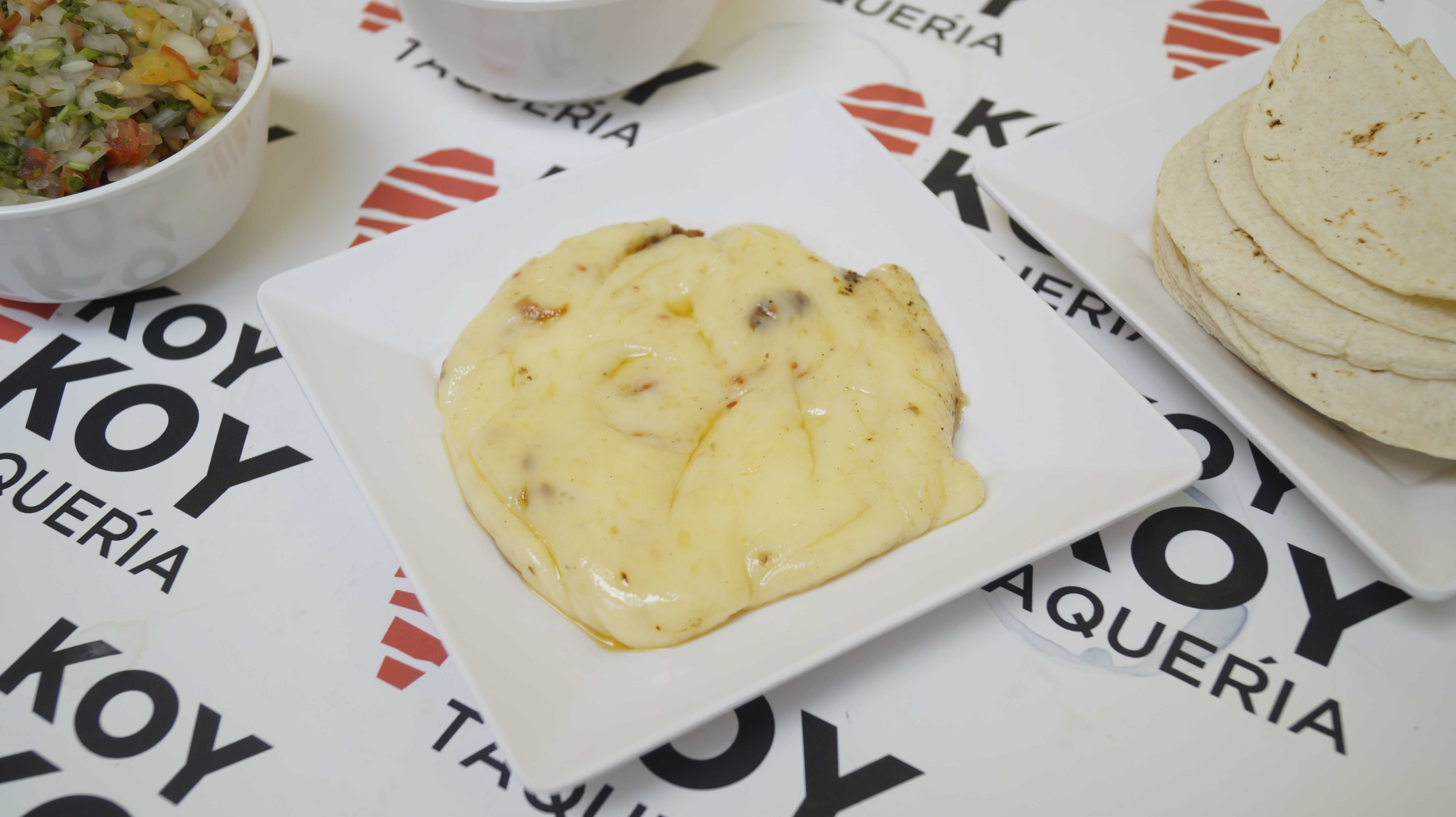Combinación de arrachera, cebolla, pimiento morrón, tocino y queso gouda fundido (350 gr). Acompañado de tortillas