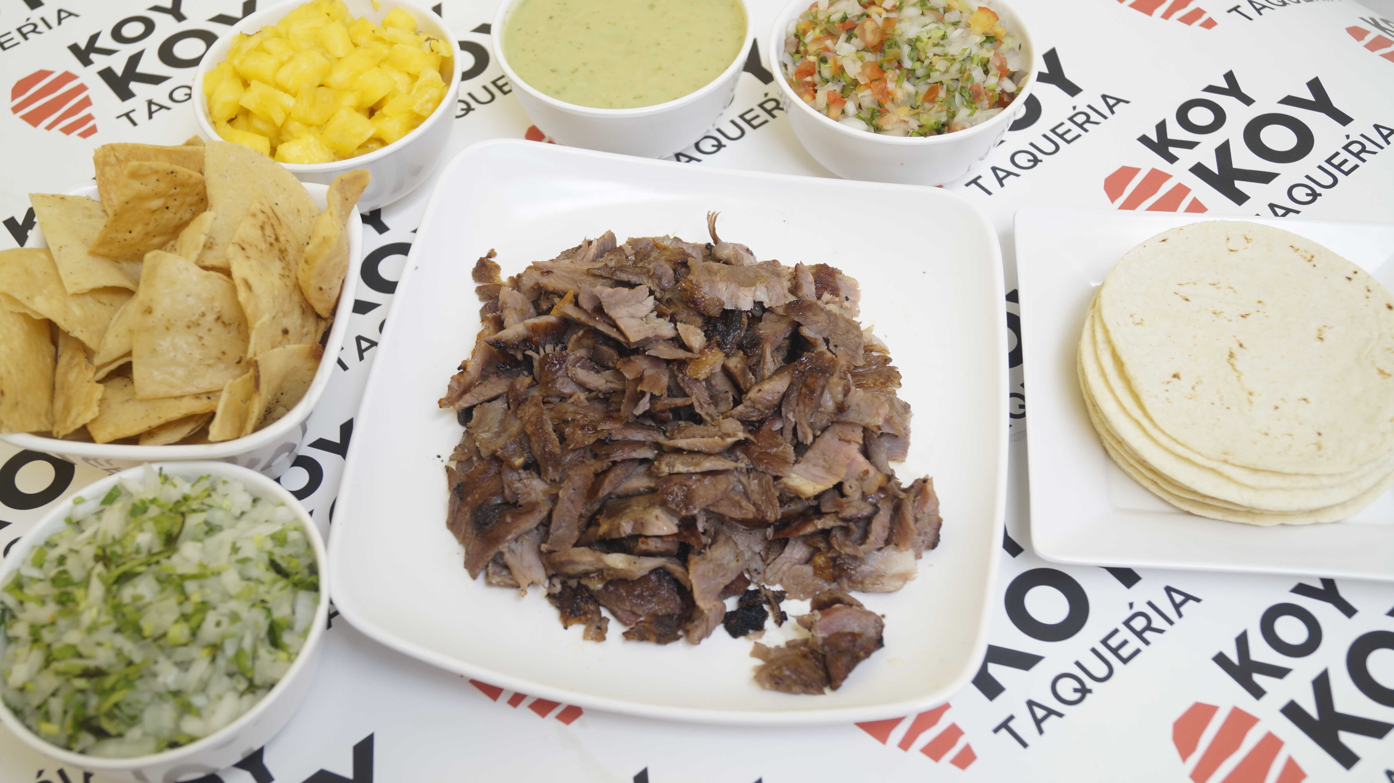 Incluye: Tortillas, Salsa verde, Salsa Mexicana, Limones y 1 kilo de carne cocida