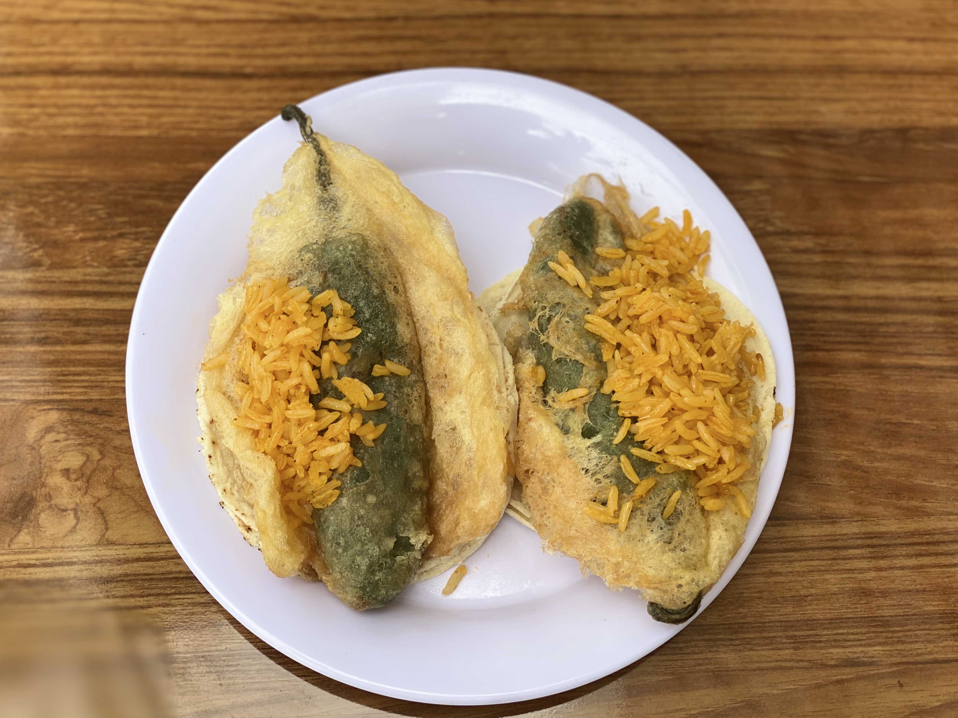 pollo deshebrado, con chile poblano, cebolla, elote y su deliciosa crema que la distingue