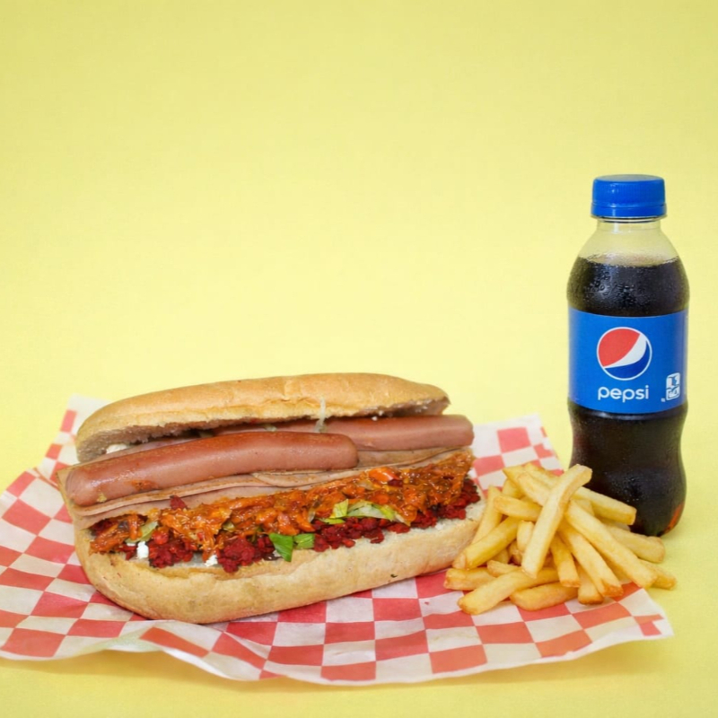 (Carne de hamburguesa, chorizo, salchicha y jamón)