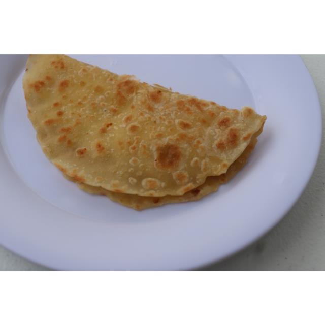 Tortilla de harina artesanal con queso gratinado, longaniza al carbón, guacamole y cebolla con cilantro.