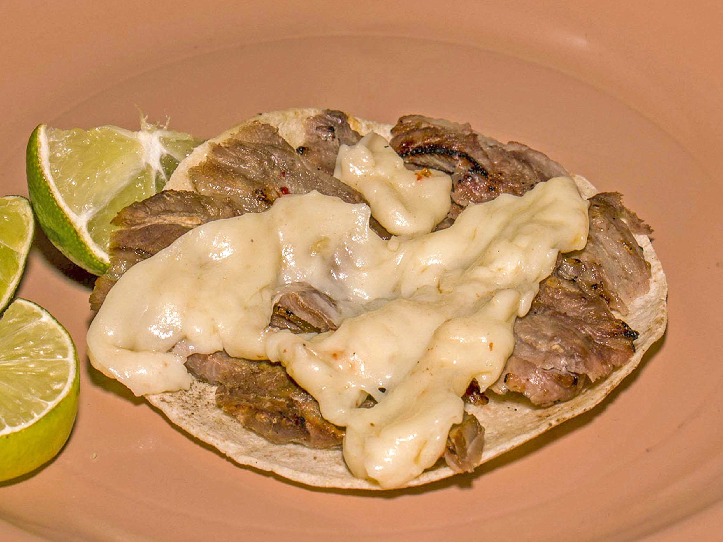 Deliciosos Tacos servidos en tortilla de maiz con carne de sirloin preparada a la plancha con queso, servios con todo (Cebolla, Cilantro, y Piña) o naturalez