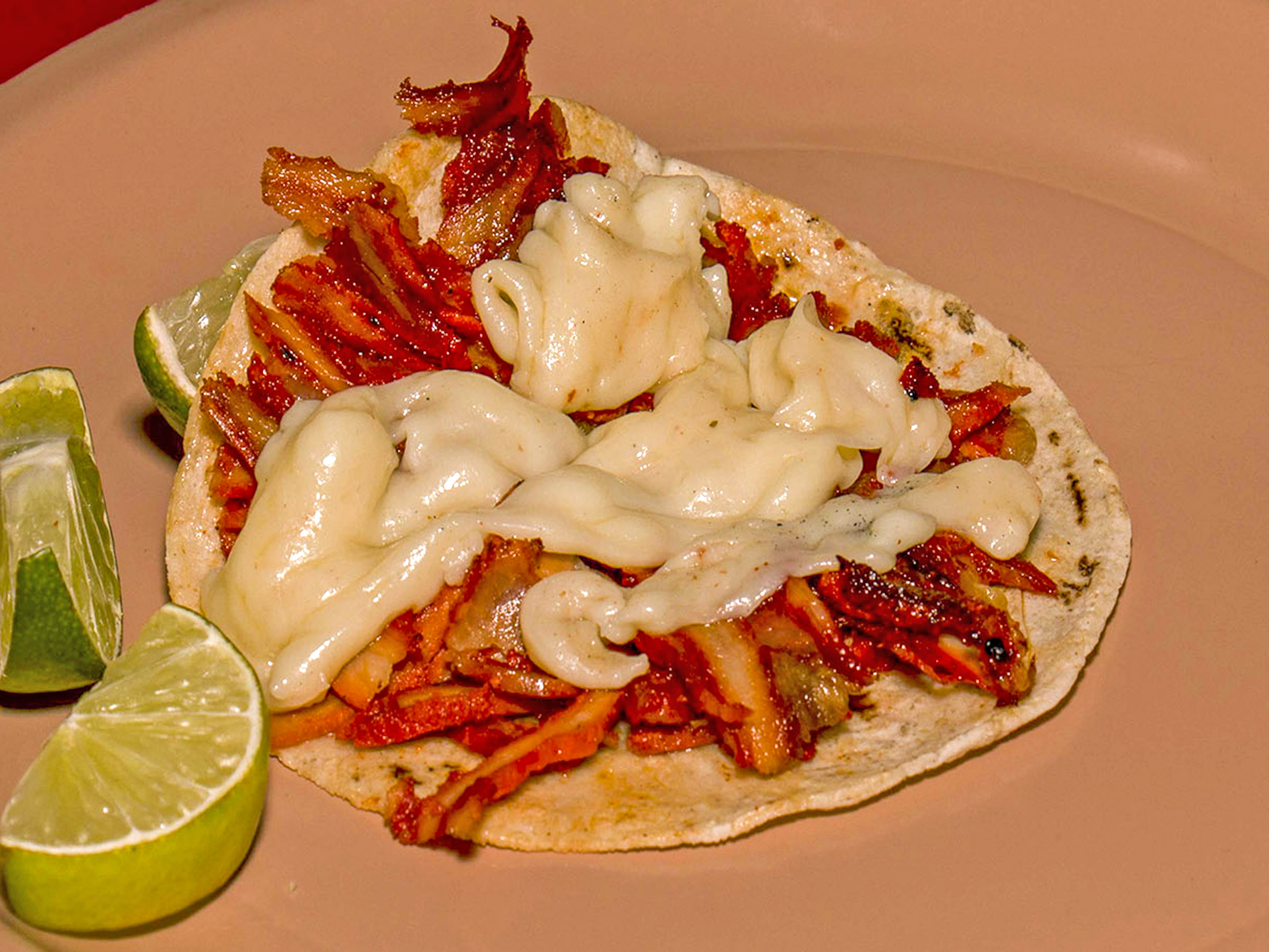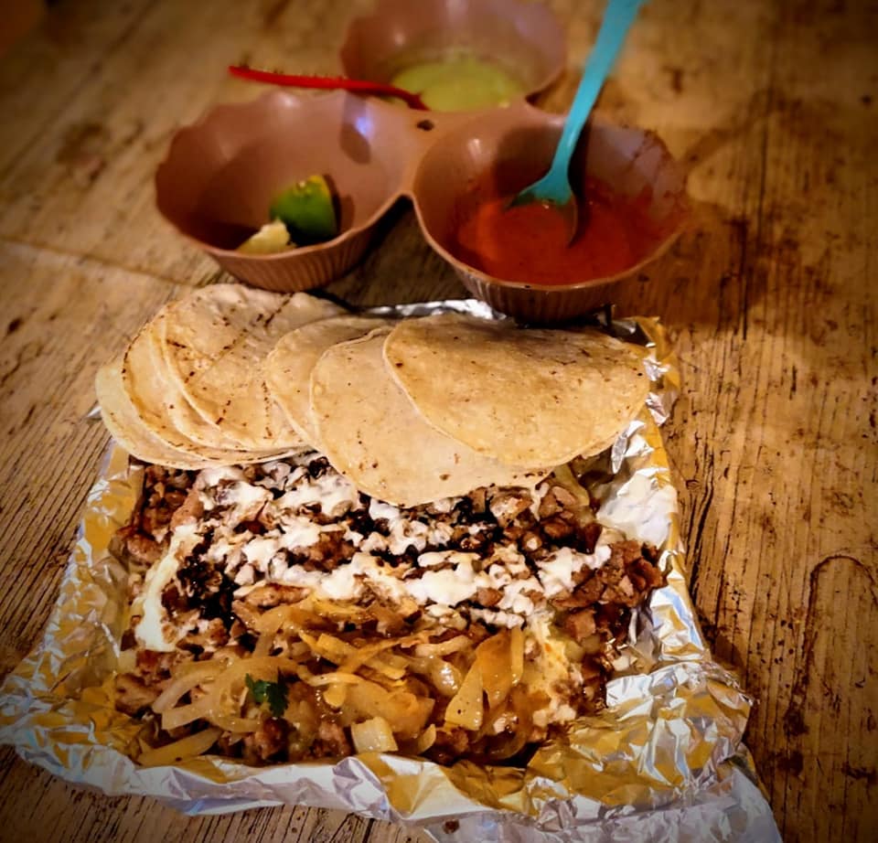 Especialidad individual para echa de deliciosa carne de pastor pasada a la plancha conbinadas con 2 quesos ( chihuahua y gouda) incluye tortillas, salsas y limones