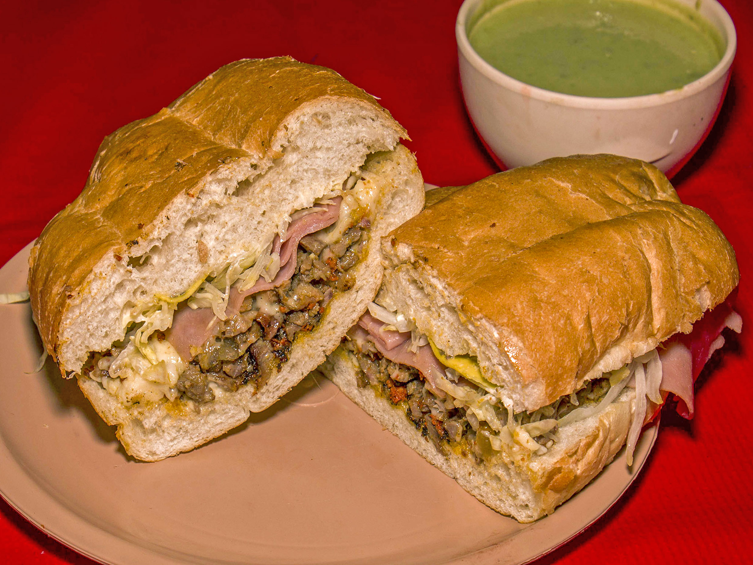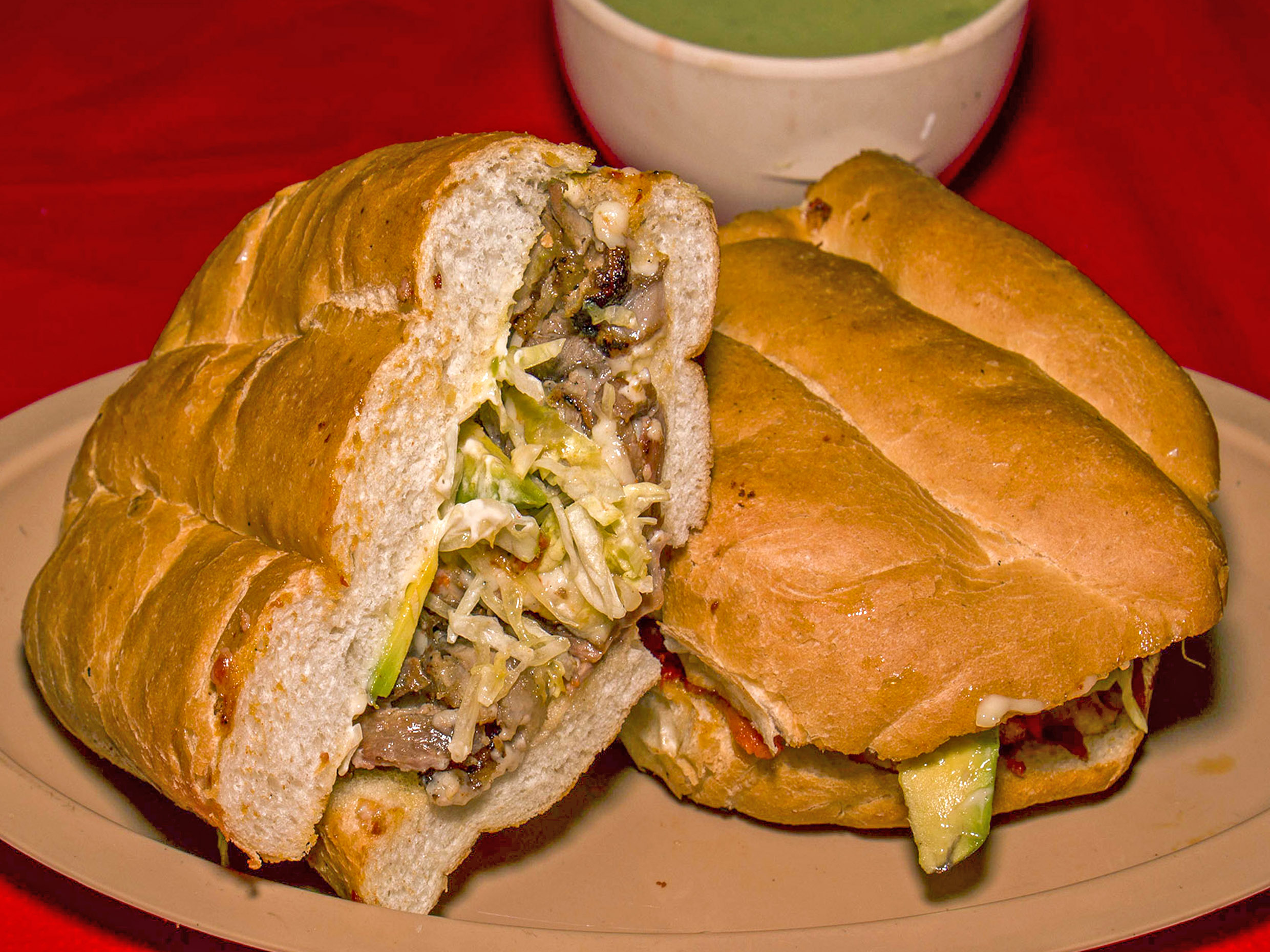 Deliciosa Torta cubana incluye longaniza, Asada, y jamon con 2 quesos ( chihuahua y gouda), servida en pan telera doble, con todo (Aguacate, Tomate, y Lechuga) o natual.