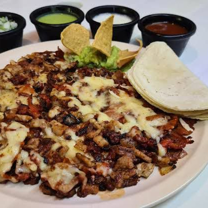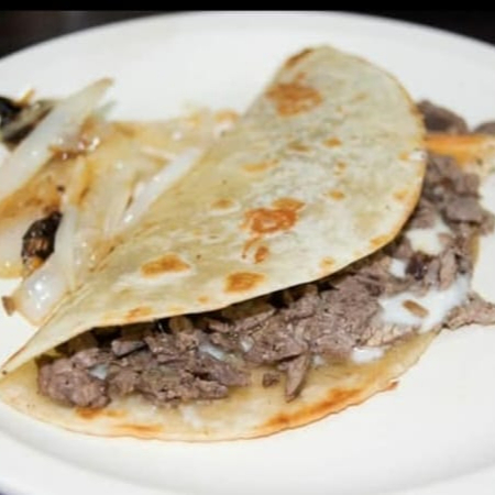 Taco de carne asada con longaniza acompañado de su cebolla y cilantro