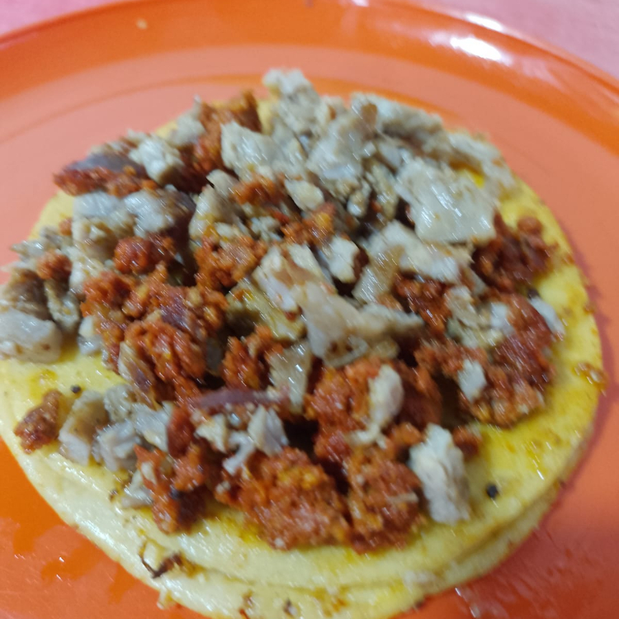 Taco de tripa,puede ser dorada, acompañado de su cebolla y cilantro