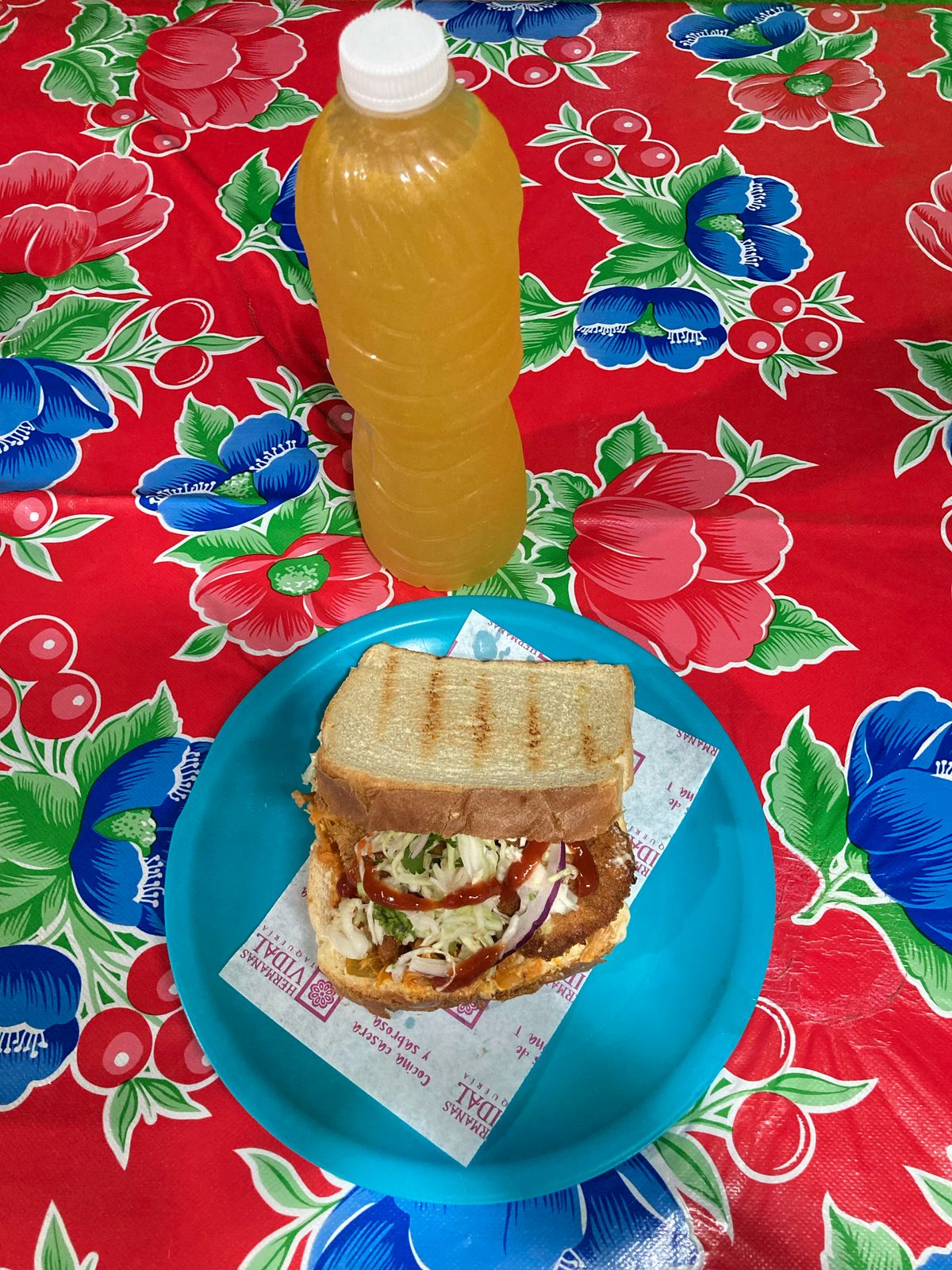 Sándwich Especial (Pierna con Empanizado)*1 + Aguas Frescas*1
