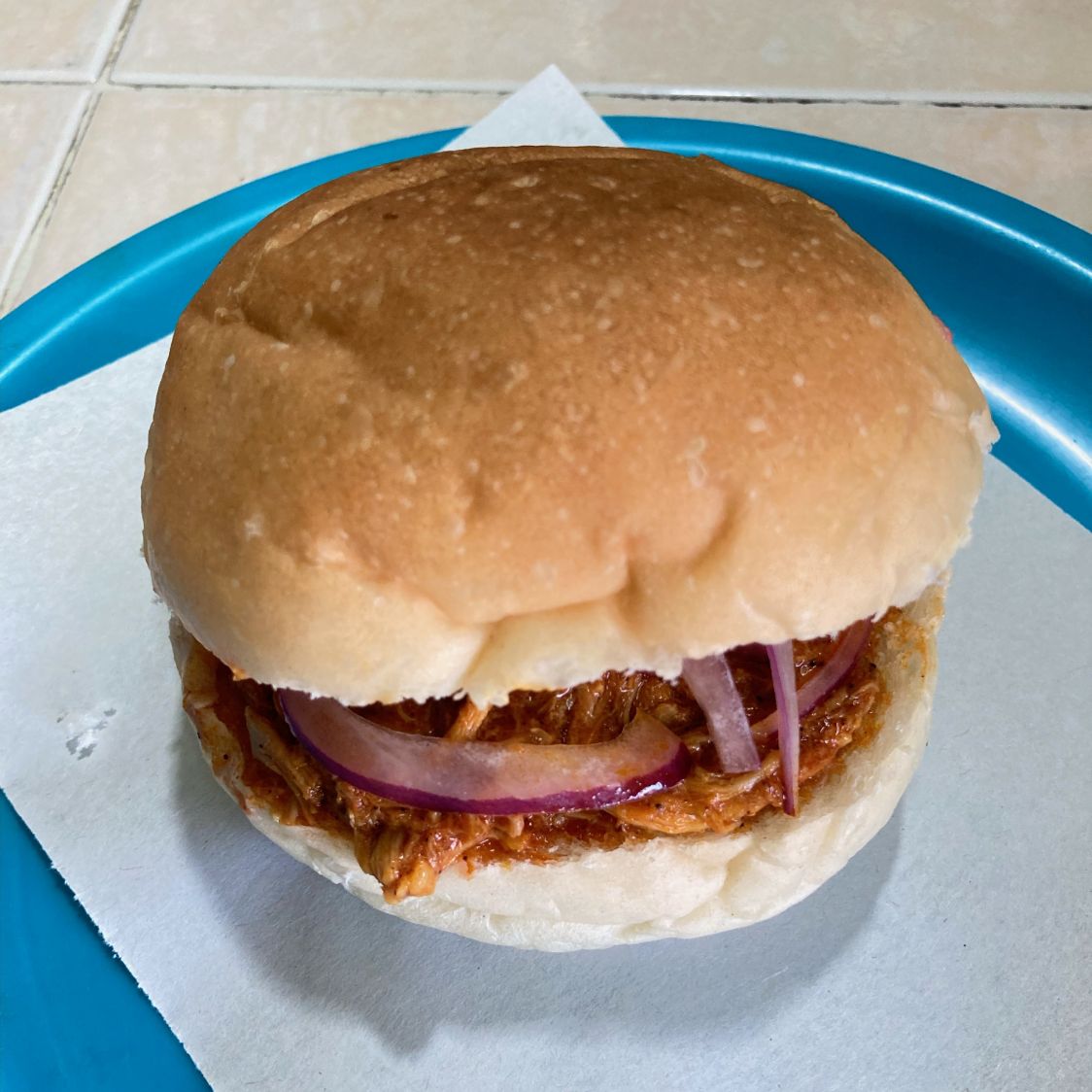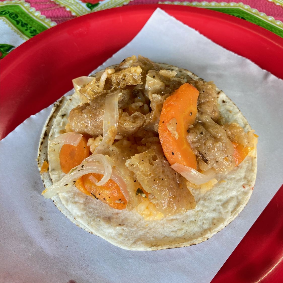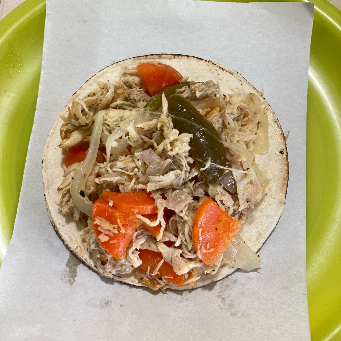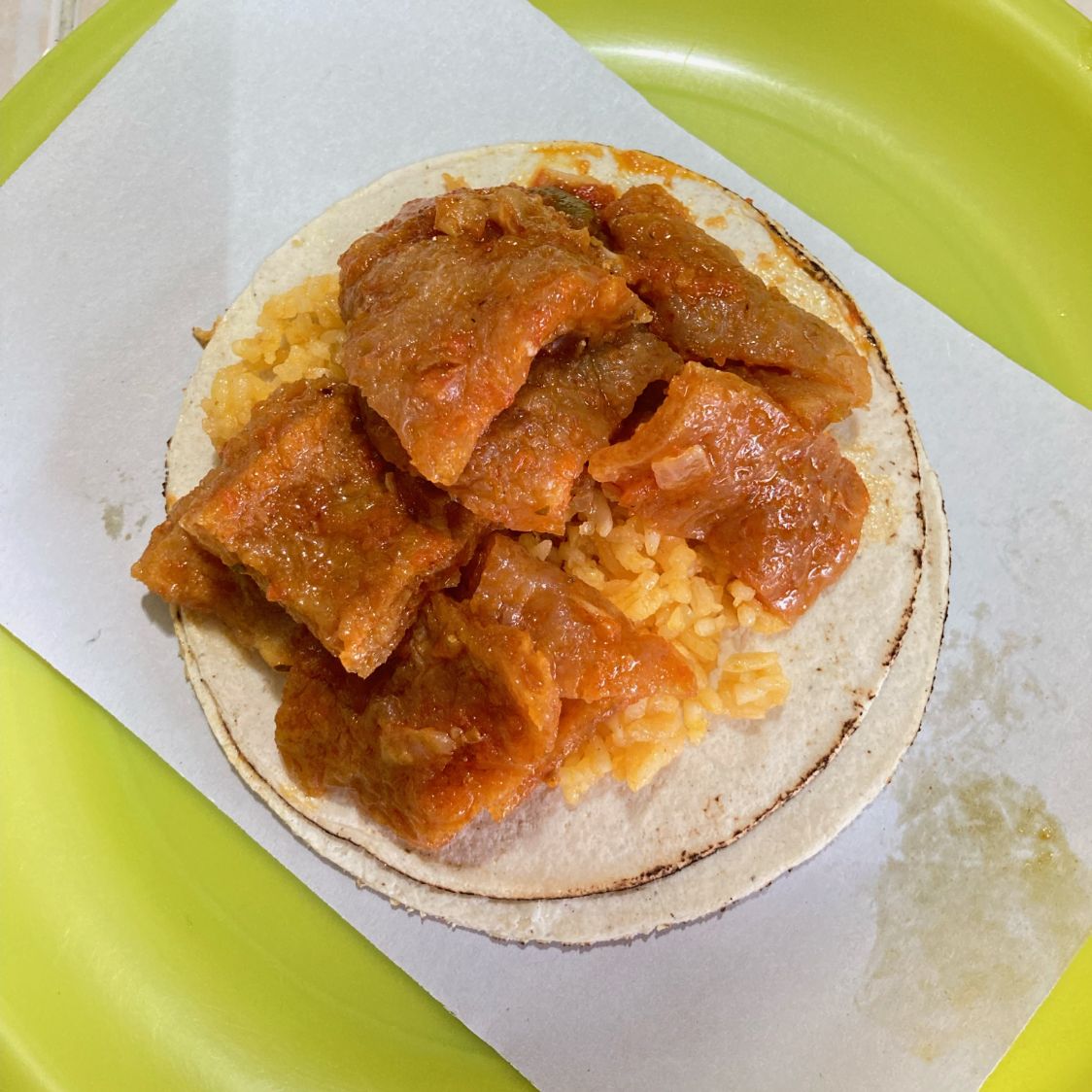 Tortita individual con mayonesa, pibil y cebollita curtida