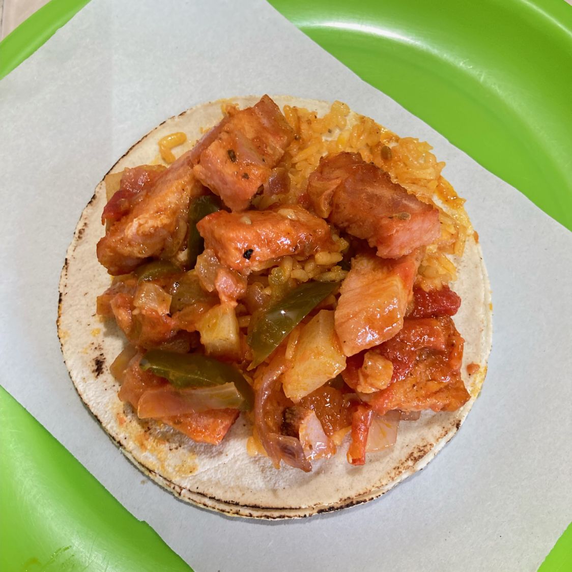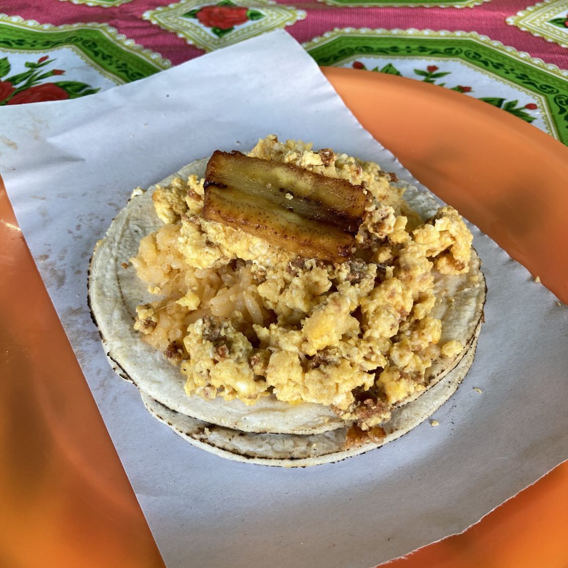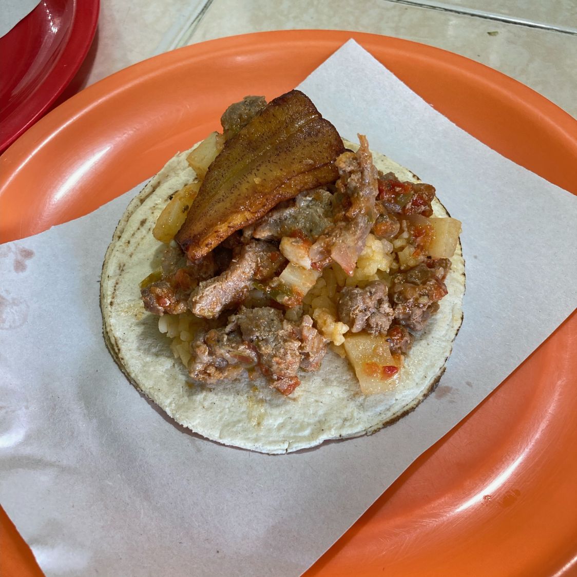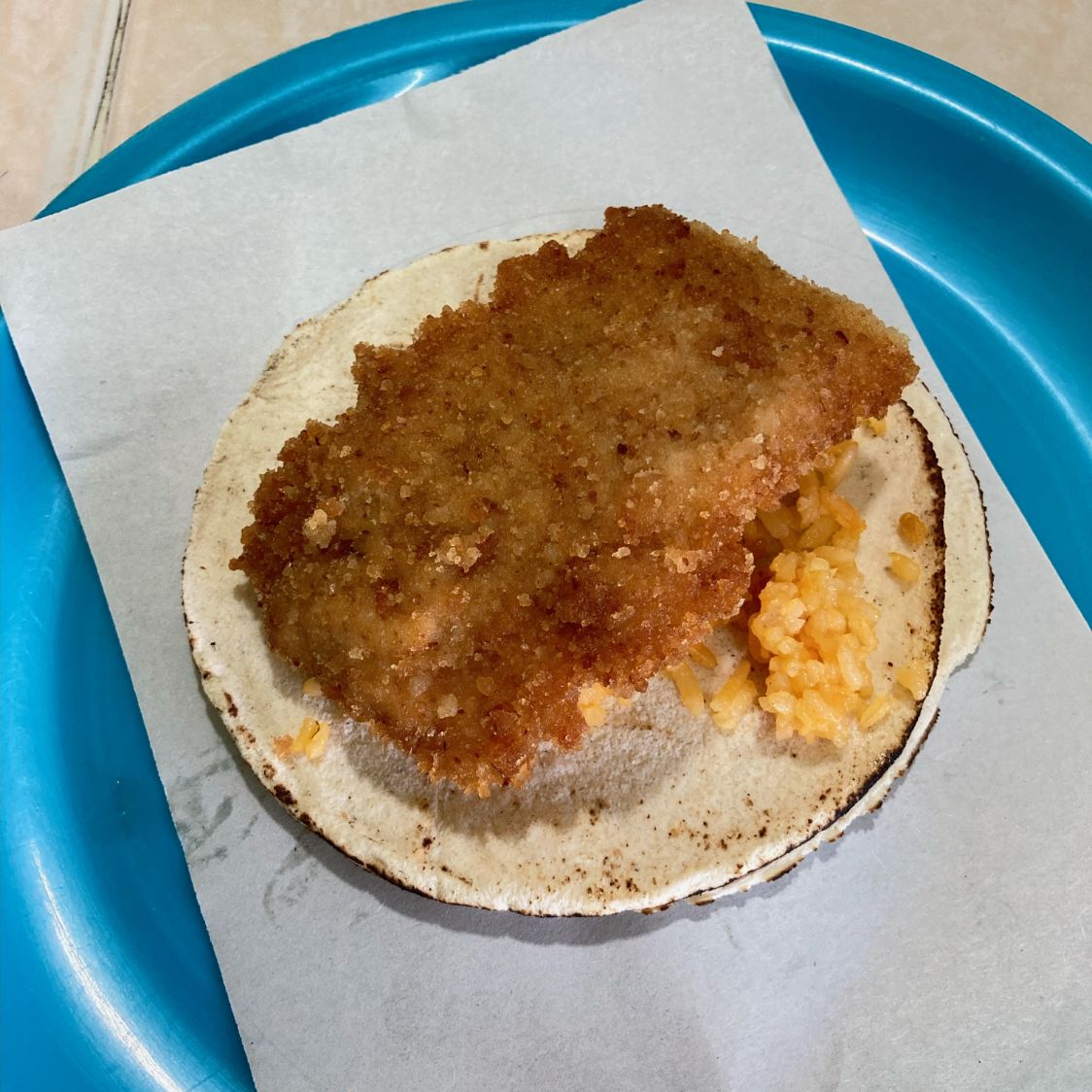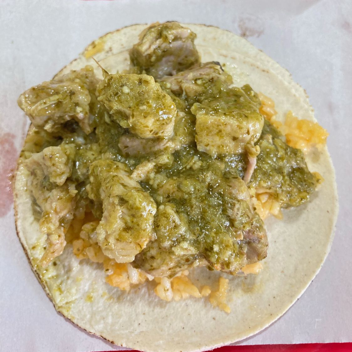 Tortita individual con mayonesa, pibil y cebollita curtida