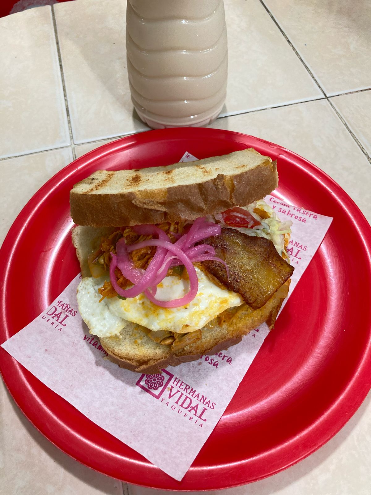 Sándwich mañanero (Huevo estrellado y pierna)*1 + Aguas Frescas*1