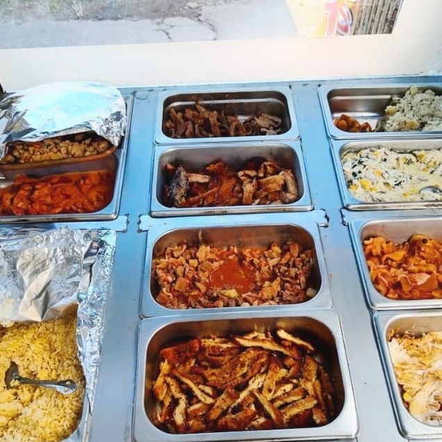 Taco de tortilla de maíz con puré de papa con carne de res y mayonesa. Acompañado con arroz. Aparte con su cebolla morada, repollo y salsa picante.