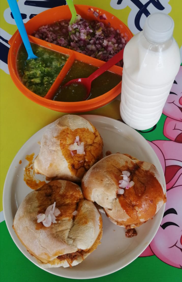 Pan de sisote cebolla curtida salsa de habanero y serrano.