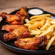 Orden de 500 grms bañado con 2 salsas a elegir, acompañado con 200grms de papas, aderezo a elegir (Todos los productos son pesados en crudo)