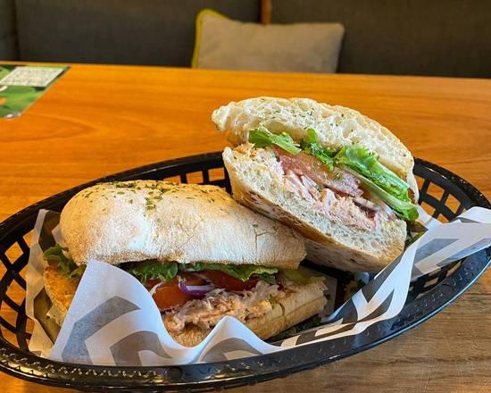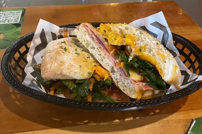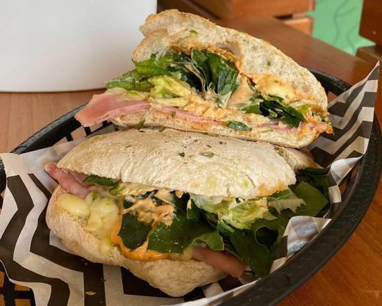Con pan de vegetales deshidratados, jamón de pavo, queso manchego, espinaca, lechuga, aguacate y aderezo chipotle.