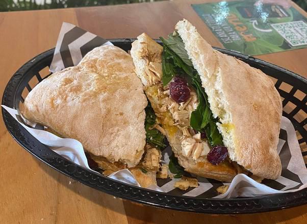 Con pan de vegetales deshidratados, pollo, queso panela, manzana, espinaca, arándanos y aderezo miel-mostaza.