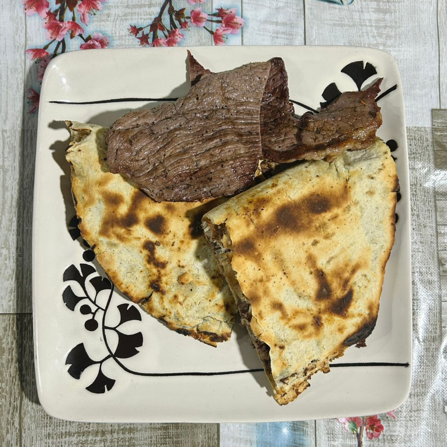 Deliciosa tlayuda especial de carne asada de res, combinada con otro ingrediente de tu elección, incluye más carne, más quesillo, preparada con: asiento, frijol, repollo y quesillo.