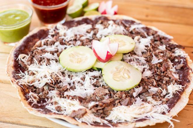Tortillas hechas con los ingredientes tipicos de la región de oaxaca, queso de hebra, asiento, frijoles y verduras como col, carnes tipo tasajo