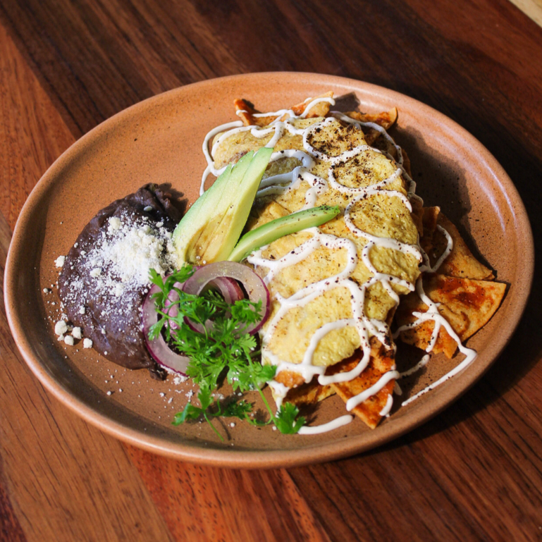 Los clásicos con la salsa de la abuela, acompañados de queso, crema, cebolla y cilantro