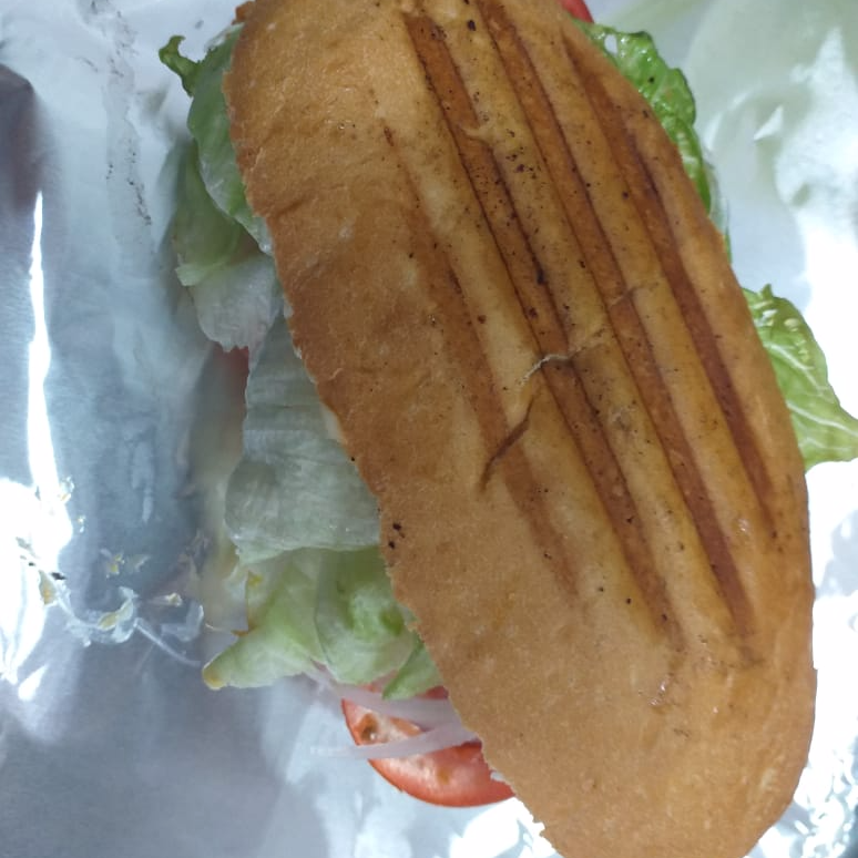 MAYONESA, FRIJOL, SALCHICHA DE PACO ASADA CON QUESO MACHEGO FUNDIDO, TOMATE, CEBOLLA, AGUACATE Y LECHUGA