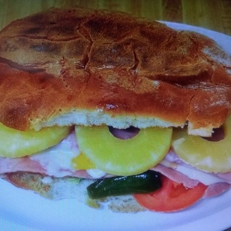 MAYONESA, FRIJOL, PIERNA HORNEADA, JAMON, QUESO MANCHEGO, TOMATE, CEBOLLA,