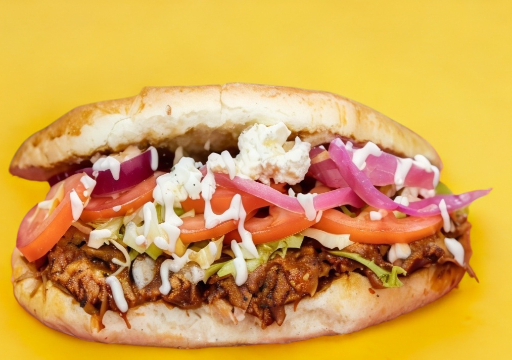 Torta de pollo combinada con milanesa con lechuga, tomate, cebolla, mayonesa, frijol, crema y queso