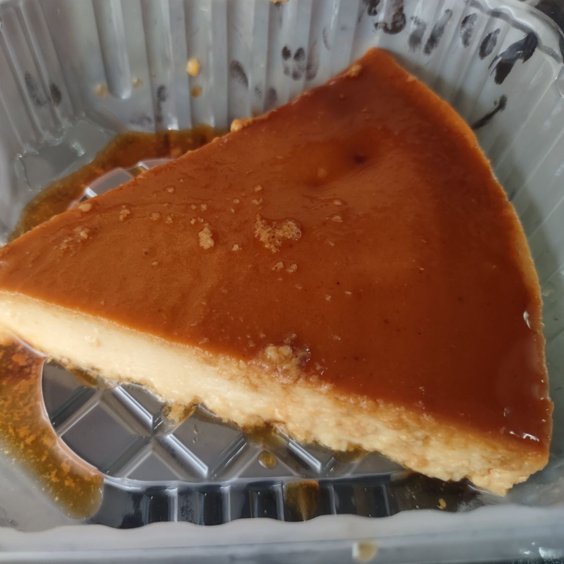 Rebanada de flan napolitano casero.