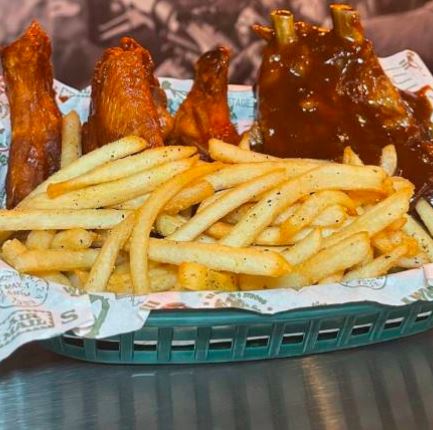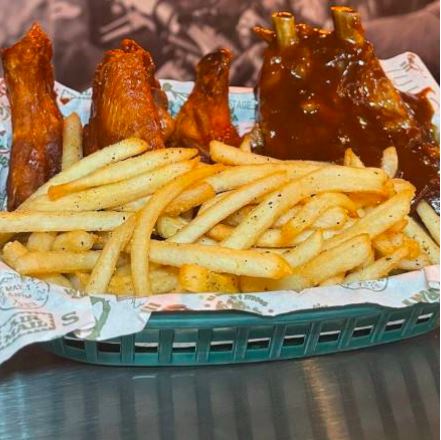 130g. Costilla- 250g de Alitas- 130g. Papas de la casa. Carnosas y jugosas costillas asadas lentamente la parrilla listas para bañarse en cualquiera de nuestras salsas.