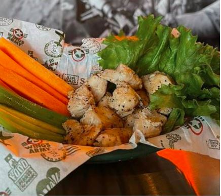 Dedos de queso 6pz o aros de cebolla 10 pz+ vegetales 160g. Cada orden de alitas o boneless contiene 2 oz de dip. Cambia tus alitas por boneless 440g. El gramaje de los productos se pesa en crudo.