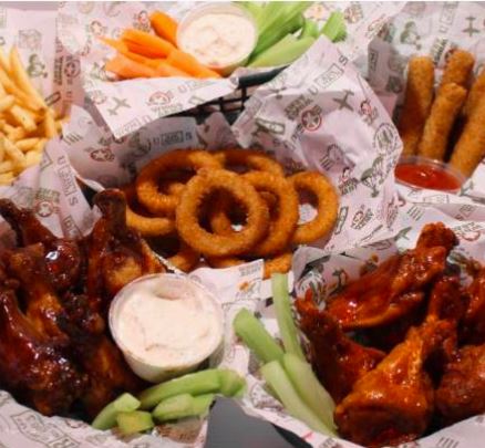 1 Kg. de Alitas(250g de Alitas diferentes + 250g de alitas dulces + 250g de alitas BBQ + 250g de alitas picantes) + 1 orden de papas(130g)+ 3 pzas de dedos de queso+ 5pzas de aros de cebolla+ 80g de vegetales + 1 dip de 4oz. Cambia tus alitas por boneless 440g.(110g dulces, picantes, diferentes BBQ
