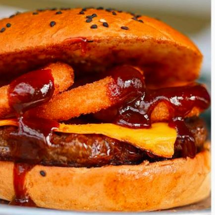 Carne de res, aros de cebolla, salsa ahumada y queso amarillo. 160g de res-130g papá. Burgers inigualables con jugosa carne de res a la parrilla o pechuga de pollo, acompañadas con papas de la casa . Extras para tu burguer sube de rango agrega alguno de los extras a tu burguer.